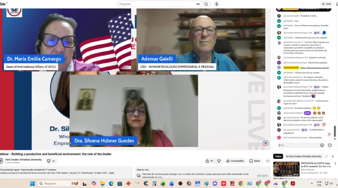 Starting its 2026 academic calendar, Veni Creator Christian University (VCCU) held last Wednesday (January 21) the webinar with the theme "Building a productive and well-being environment: the role of the leader", broadcasted on the institution's official YouTube channel. The event was led by speakers Dr Silvana Guedes and Dr. Ademar...